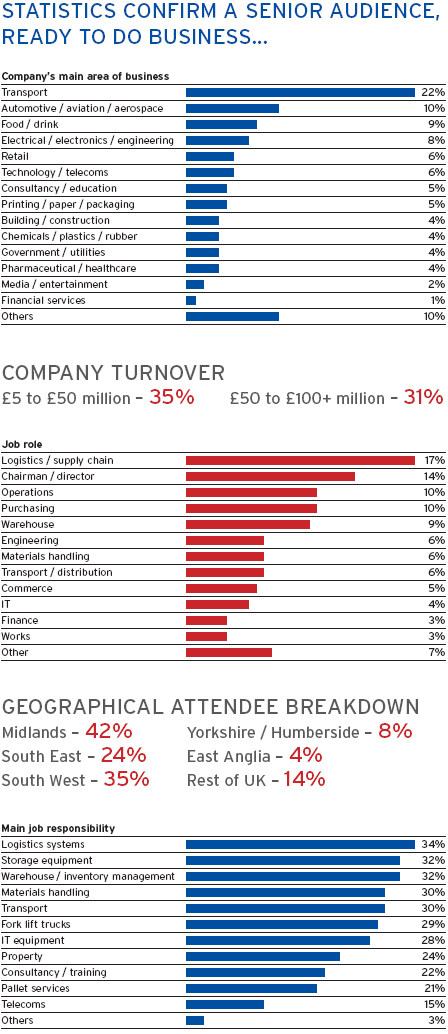 1,743 visitors came to Materials Handling Live! And logistics link live! Including the following senior professionals: